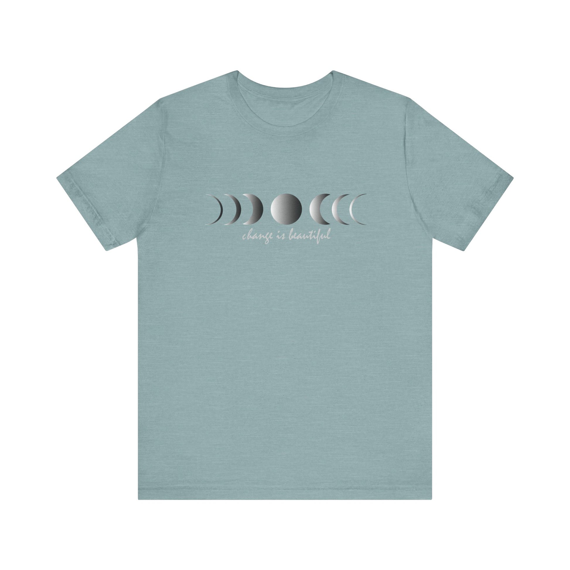 Celebrate the beauty of transformation with this calming, nature-inspired moon phases tee. Featuring the full lunar cycle and the uplifting reminder that change is beautiful, this shirt brings together style, comfort, and meaning.